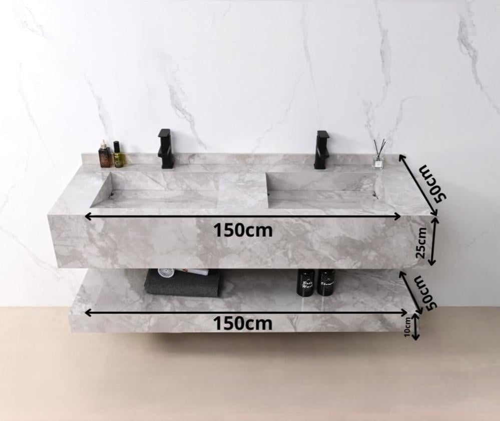 - 🚿 المغسلة: 150 سم عرض × 50 سم عمق × 25 سم ارتفاع.